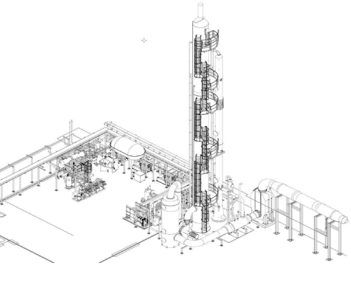 Отдувочный газ для очистки подается из ребойлера CO2. В дистилляционной колонне жидкий СО2 из конденсатора СО2 соприкасается с газом из ребойлера, тем самым позволяя отделить инертные газы из жидкого СО2. Из нижней части дистилляционной колонны жидкий СО2 перекачивается в ёмкость для хранения через тепловой насос.